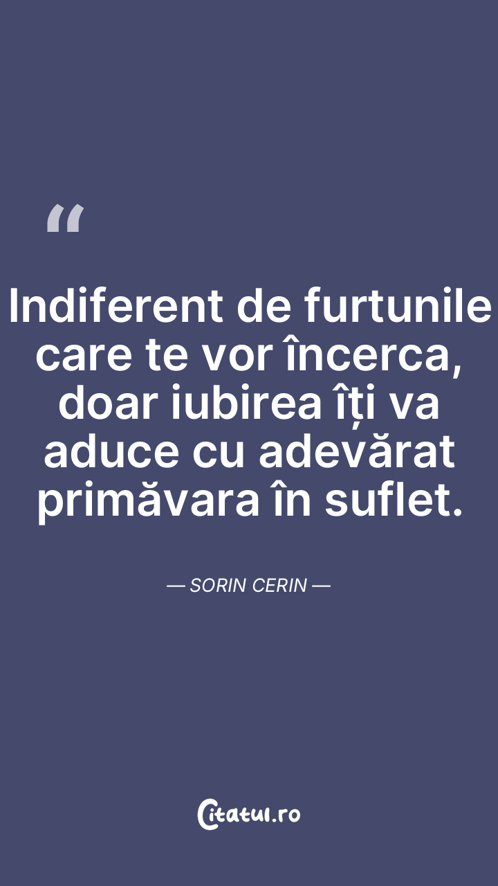Indiferent de furtunile care te vor încerca, doar iubirea îți va aduce cu adevărat primăvara în suflet. Sorin Cerin