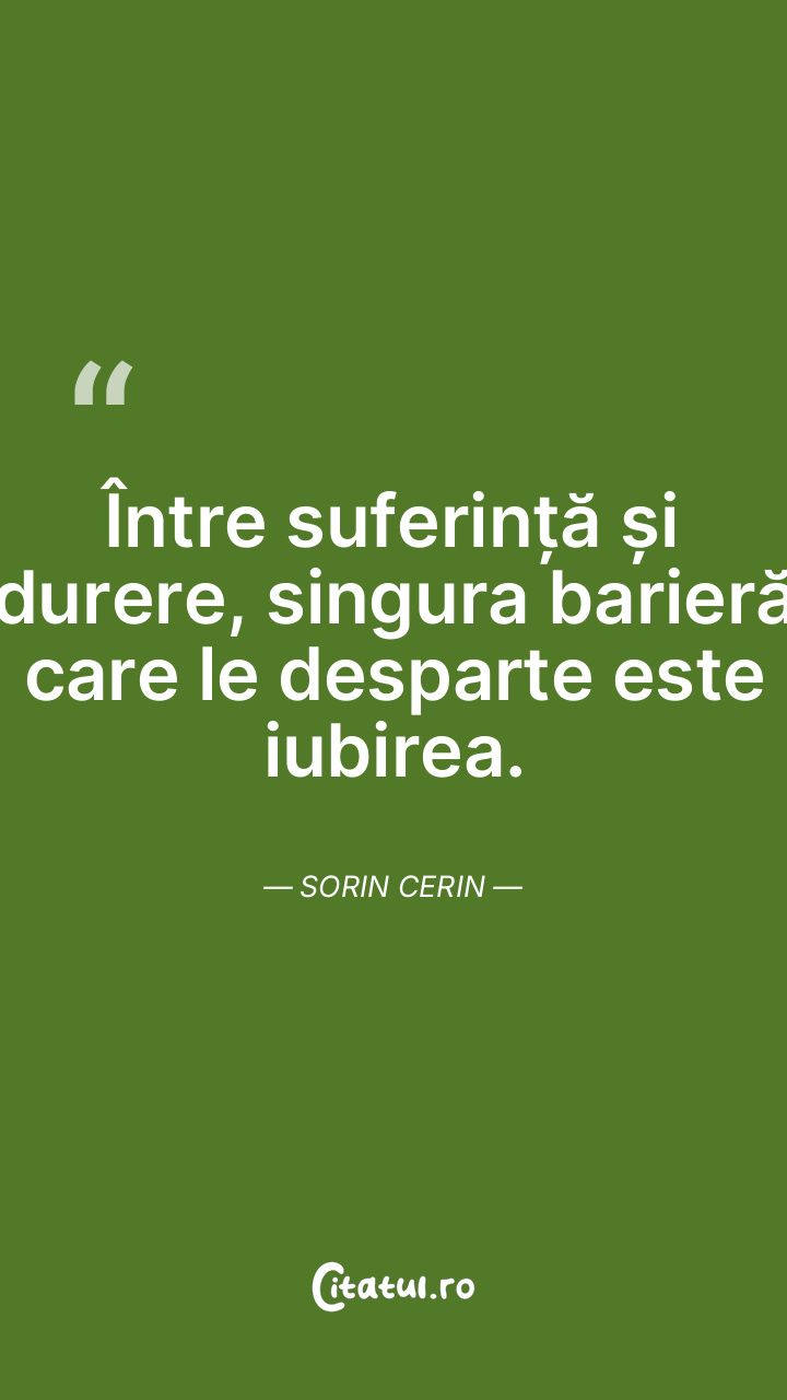 Între suferință și durere, singura barieră care le desparte este iubirea. Sorin Cerin