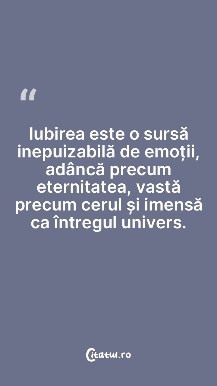 Iubirea este o sursă inepuizabilă de emoții, adâncă precum eternitatea, vastă precum cerul și imensă ca întregul univers.