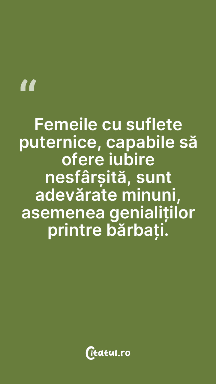 Femeile cu suflete puternice, capabile să ofere iubire nesfârșită, sunt adevărate minuni, asemenea genialiților printre bărbați.