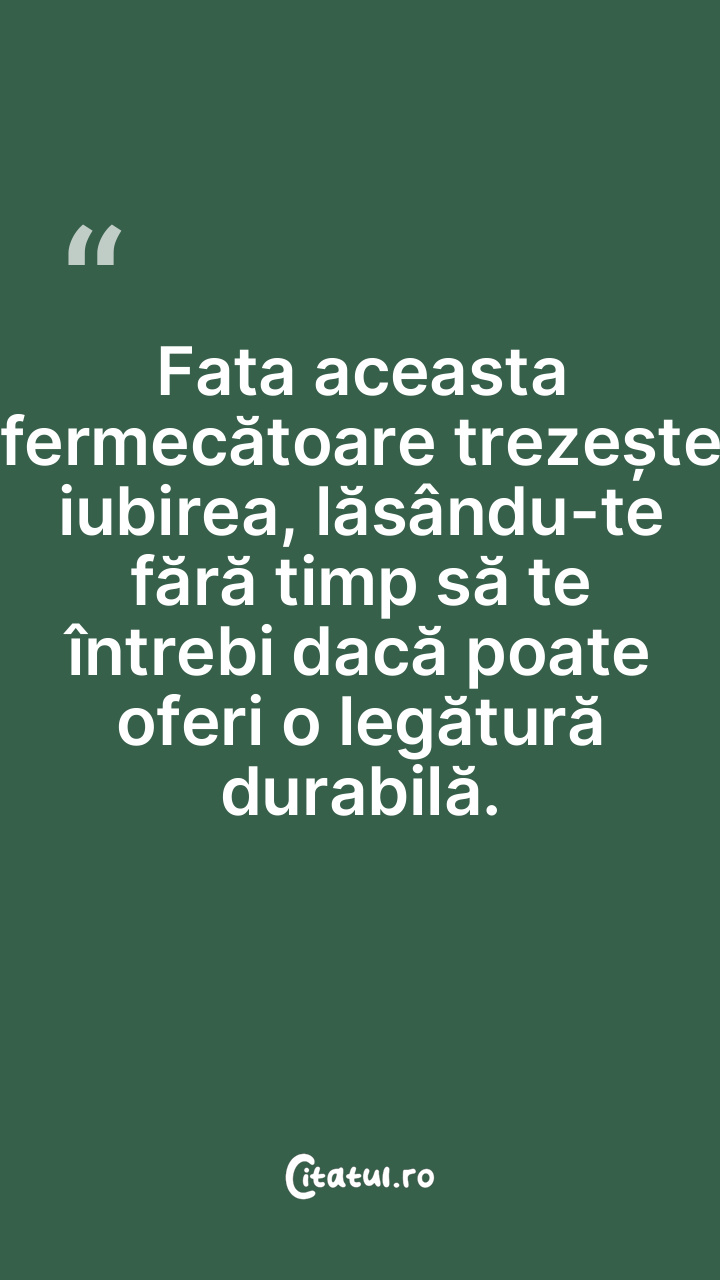 Fata aceasta fermecătoare trezește iubirea, lăsându-te fără timp să te întrebi dacă poate oferi o legătură durabilă.
