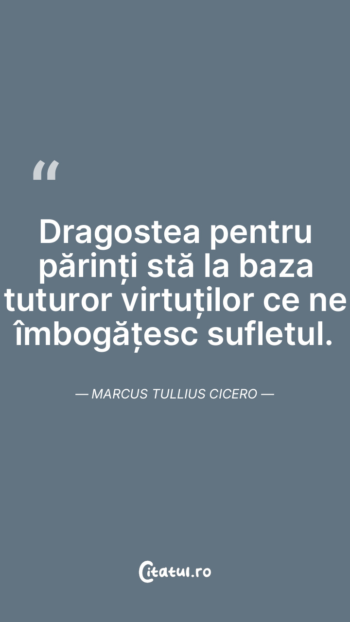 Dragostea pentru părinți stă la baza tuturor virtuților ce ne îmbogățesc sufletul. Marcus Tullius Cicero
