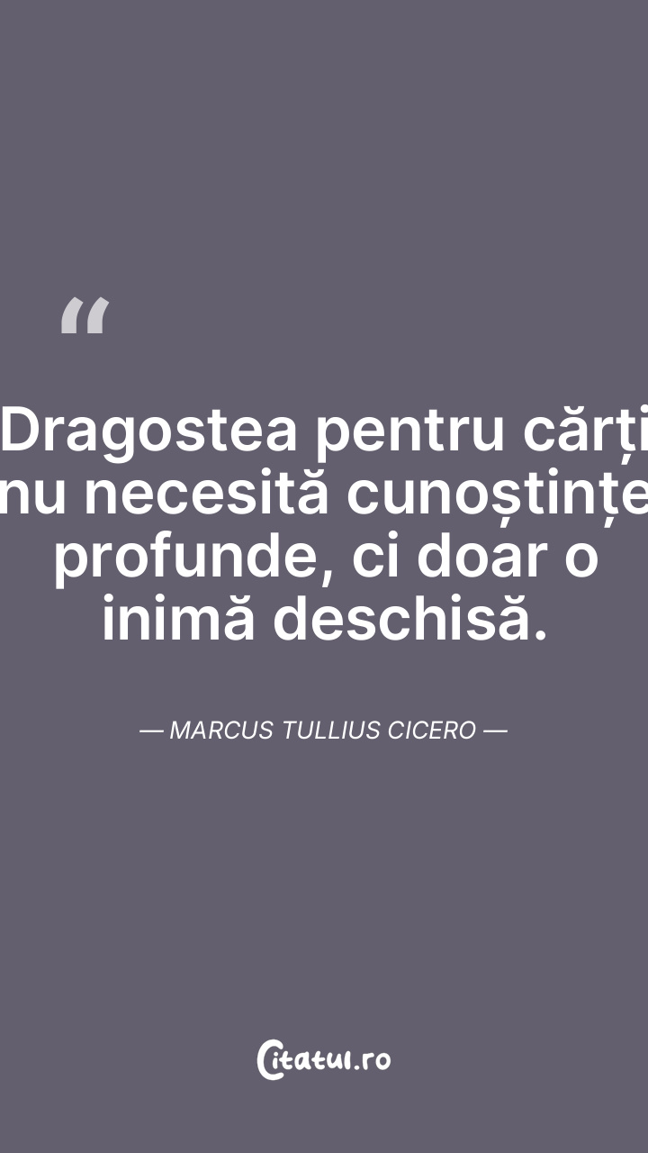 Dragostea pentru cărți nu necesită cunoștințe profunde, ci doar o inimă deschisă. Marcus Tullius Cicero