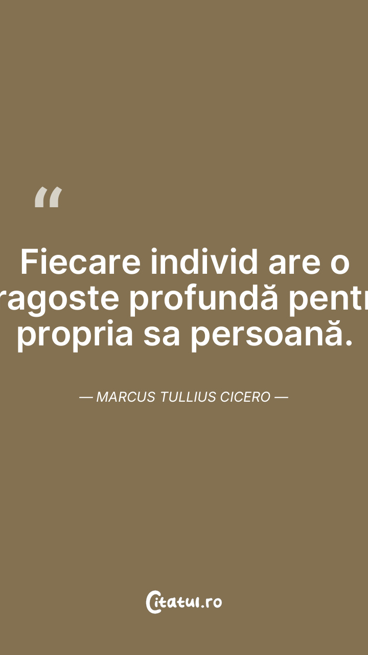 Fiecare individ are o dragoste profundă pentru propria sa persoană. Marcus Tullius Cicero