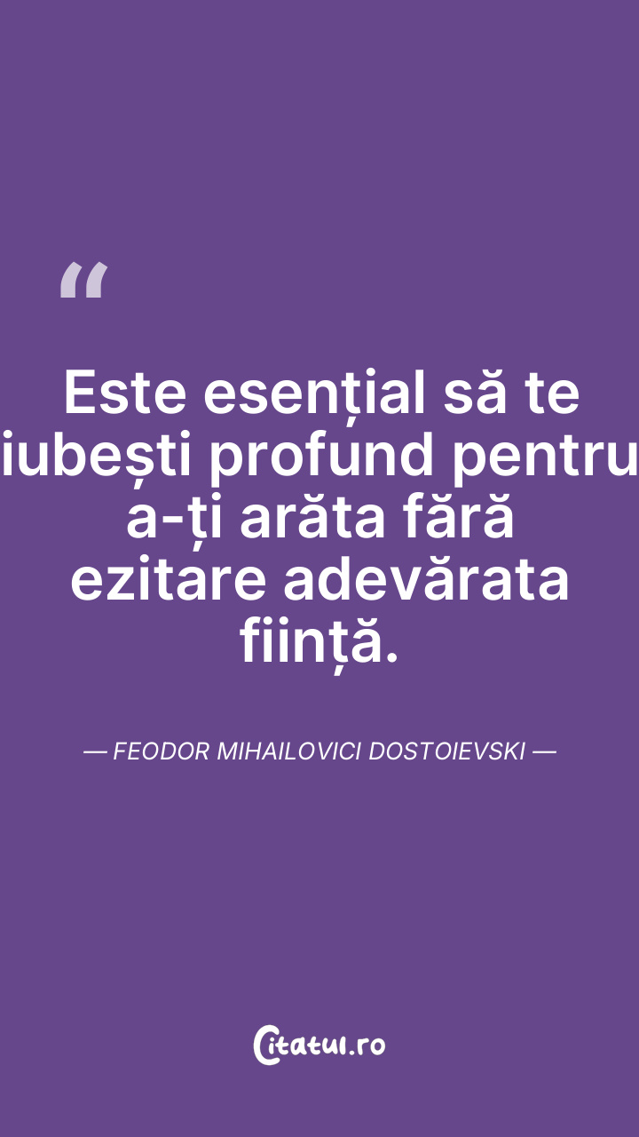 Este esențial să te iubești profund pentru a-ți arăta fără ezitare adevărata ființă. Feodor Mihailovici Dostoievski