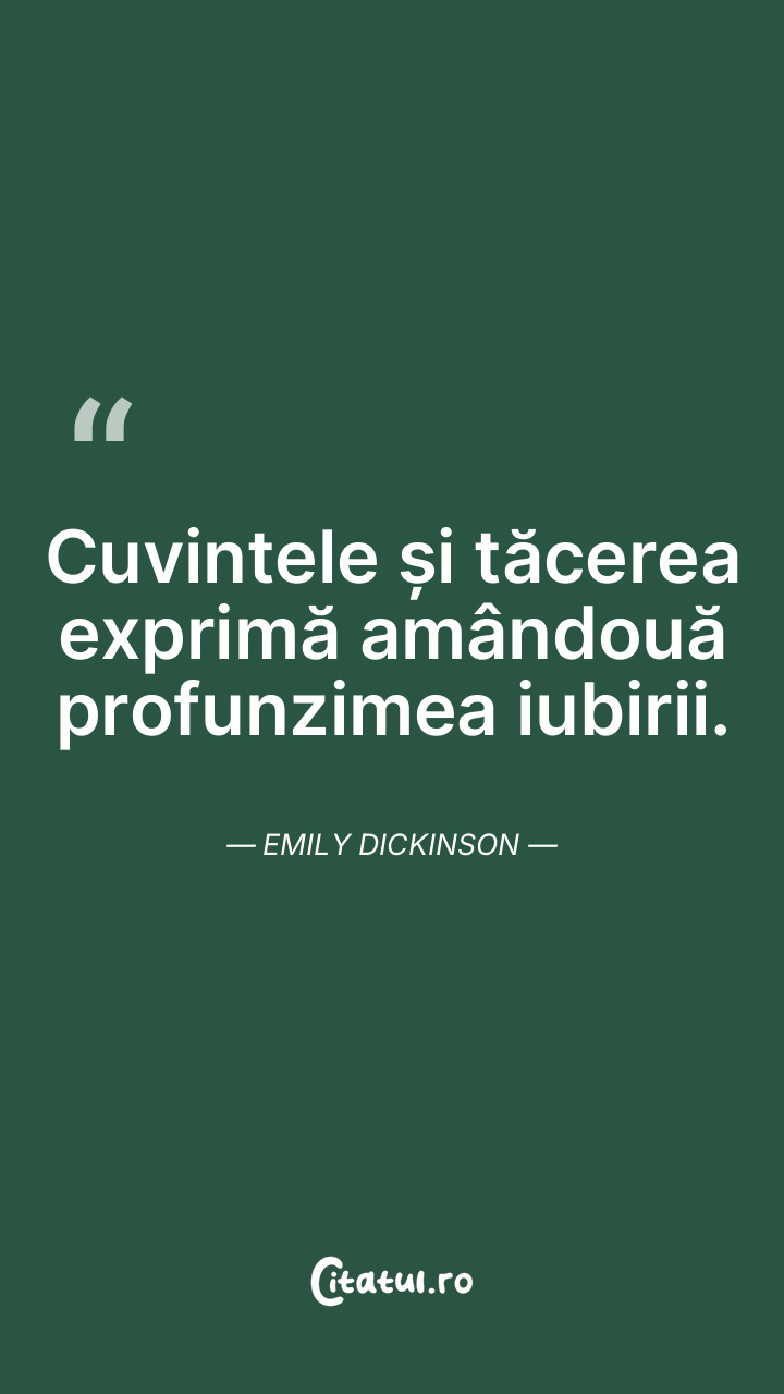 Cuvintele și tăcerea exprimă amândouă profunzimea iubirii. Emily Dickinson
