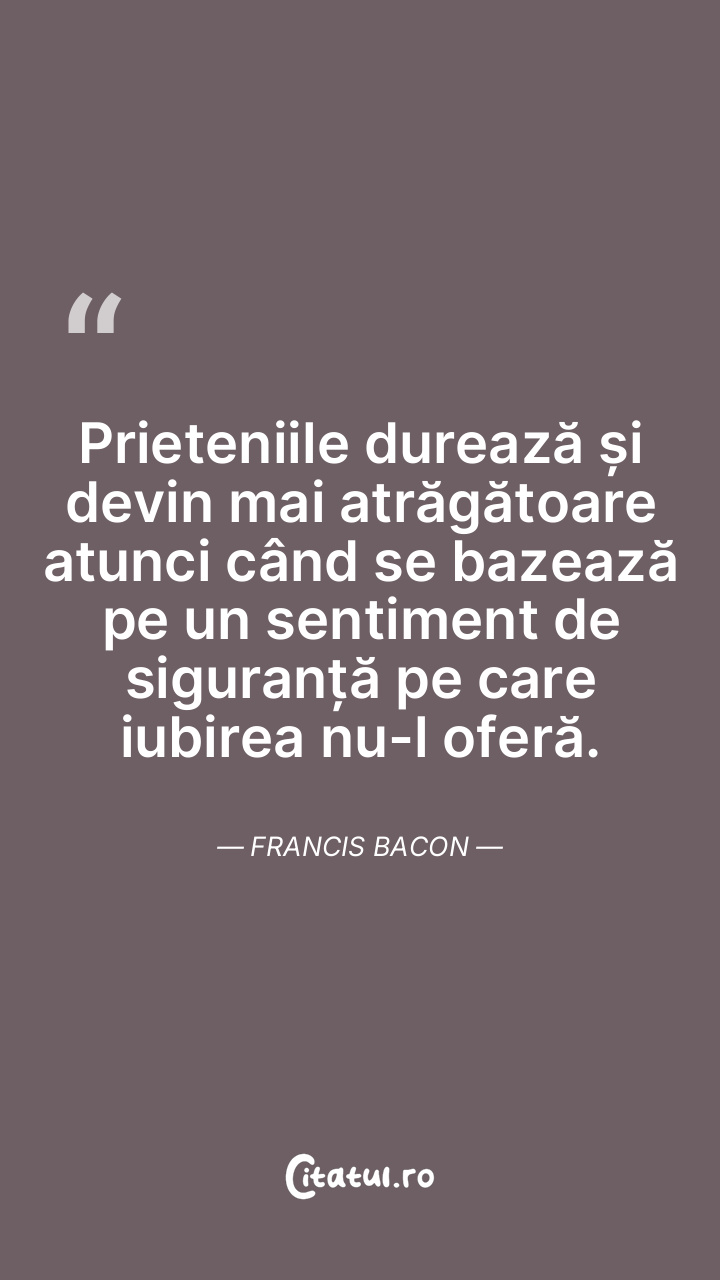 Prieteniile durează și devin mai atrăgătoare atunci când se bazează pe un sentiment de siguranță pe care iubirea nu-l oferă. Francis Bacon