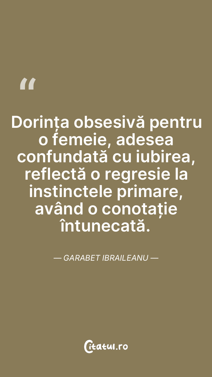 Dorința obsesivă pentru o femeie, adesea confundată cu iubirea, reflectă o regresie la instinctele primare, având o conotație întunecată. Garabet Ibraileanu