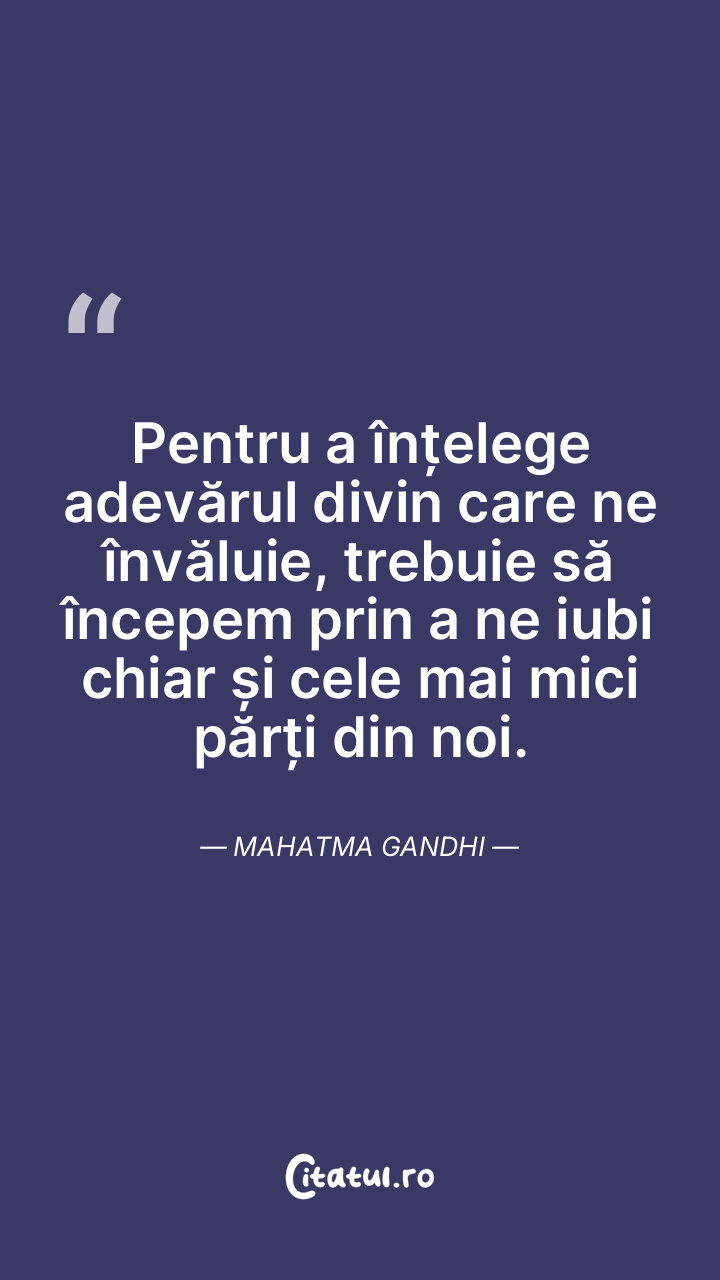 Pentru a înțelege adevărul divin care ne învăluie, trebuie să începem prin a ne iubi chiar și cele mai mici părți din noi. Mahatma Gandhi