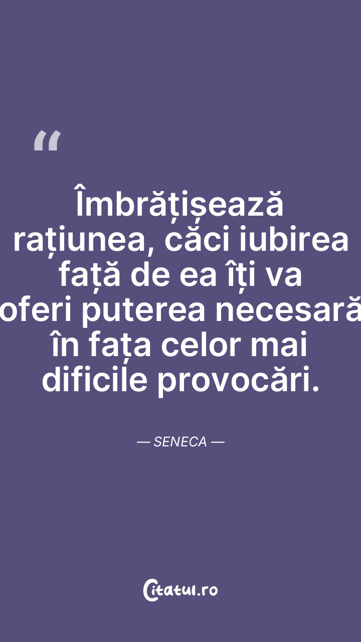 Îmbrățișează rațiunea, căci iubirea față de ea îți va oferi puterea necesară în fața celor mai dificile provocări. Seneca