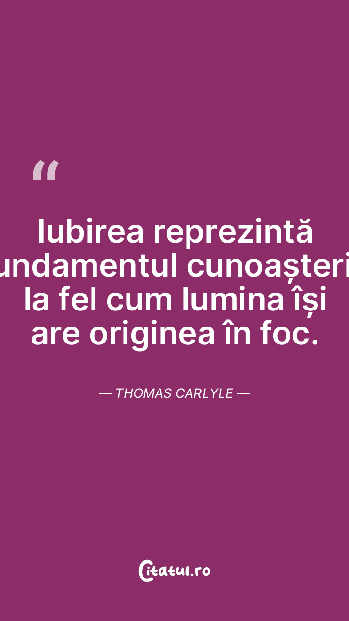 Iubirea reprezintă fundamentul cunoașterii, la fel cum lumina își are originea în foc. Thomas Carlyle