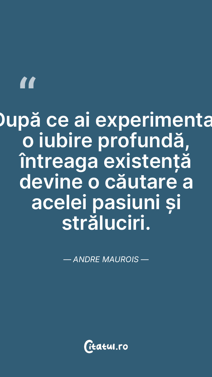 După ce ai experimentat o iubire profundă, întreaga existență devine o căutare a acelei pasiuni și străluciri. Andre Maurois