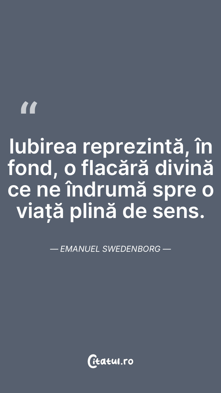 Iubirea reprezintă, în fond, o flacără divină ce ne îndrumă spre o viață plină de sens. Emanuel Swedenborg