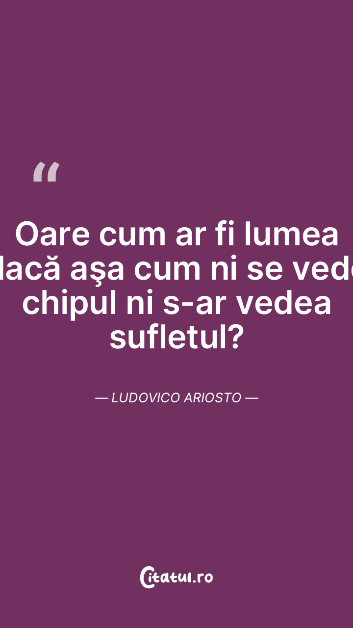 Oare cum ar fi lumea dacă aşa cum ni se vede chipul ni s-ar vedea sufletul? Ludovico Ariosto