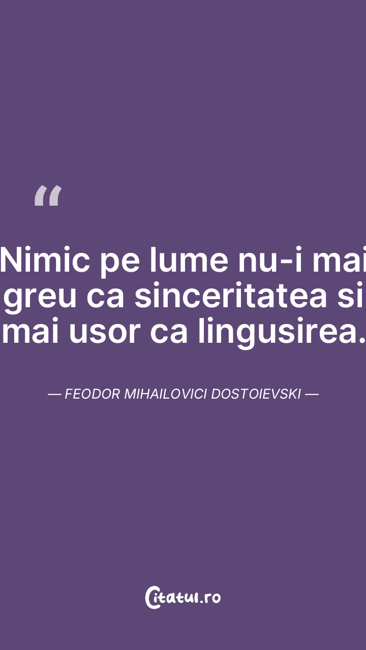 Nimic pe lume nu-i mai greu ca sinceritatea si mai usor ca lingusirea. Feodor Mihailovici Dostoievski