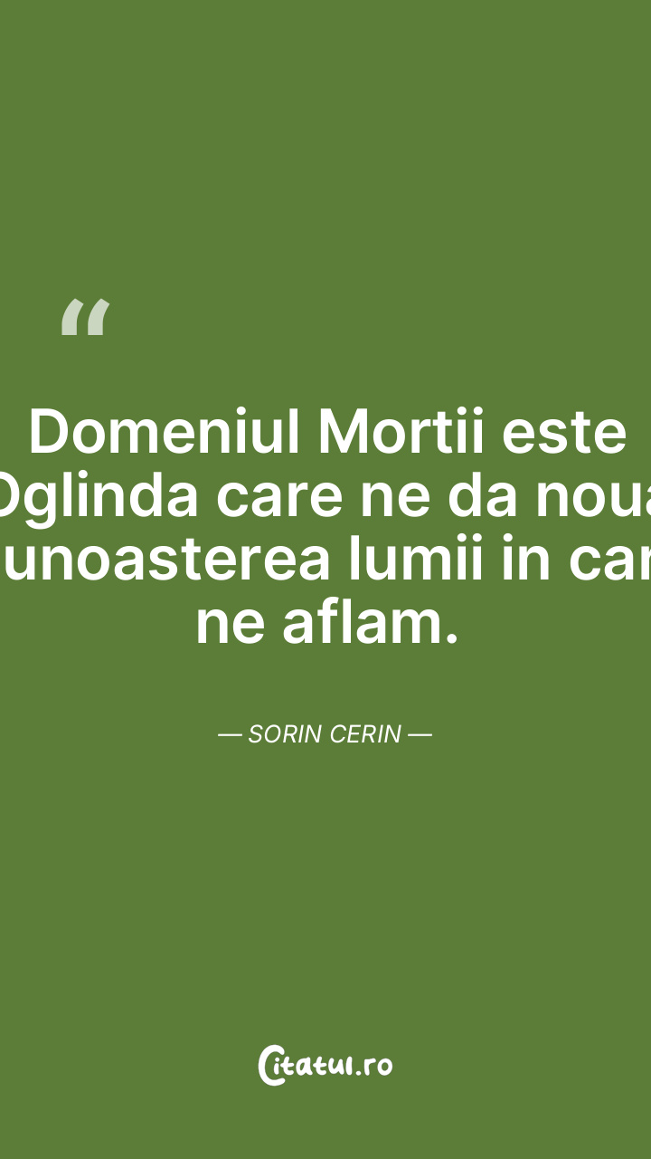 Domeniul Mortii este Oglinda care ne da noua Cunoasterea lumii in care ne aflam. Sorin Cerin