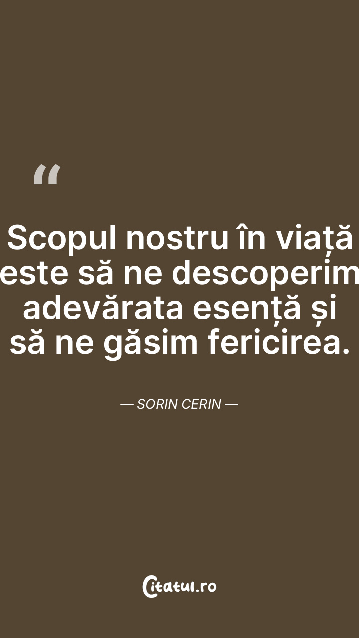 Scopul nostru în viață este să ne descoperim adevărata esență și să ne găsim fericirea. Sorin Cerin