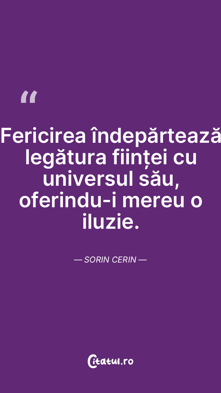 Fericirea îndepărtează legătura ființei cu universul său, oferindu-i mereu o iluzie. Sorin Cerin