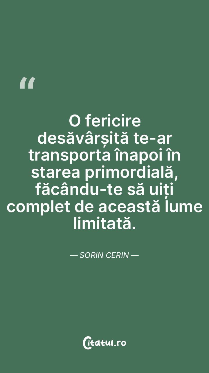 O fericire desăvârșită te-ar transporta înapoi în starea primordială, făcându-te să uiți complet de această lume limitată. Sorin Cerin
