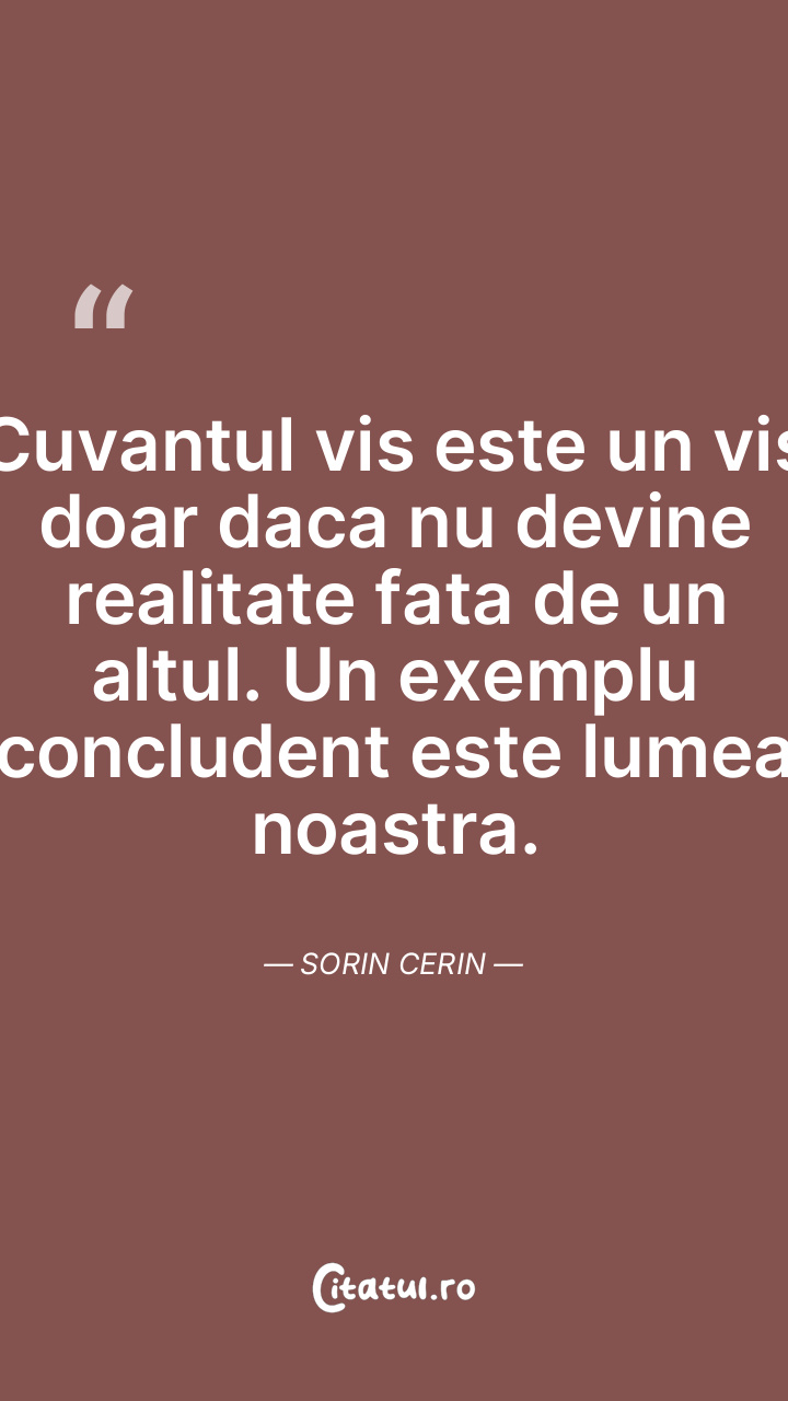 Cuvantul vis este un vis doar daca nu devine realitate fata de un altul. Un exemplu concludent este lumea noastra. Sorin Cerin