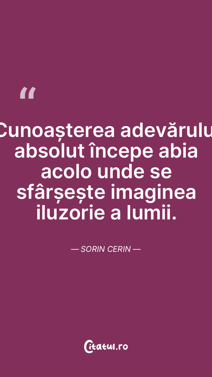 Cunoașterea adevărului absolut începe abia acolo unde se sfârșește imaginea iluzorie a lumii. Sorin Cerin