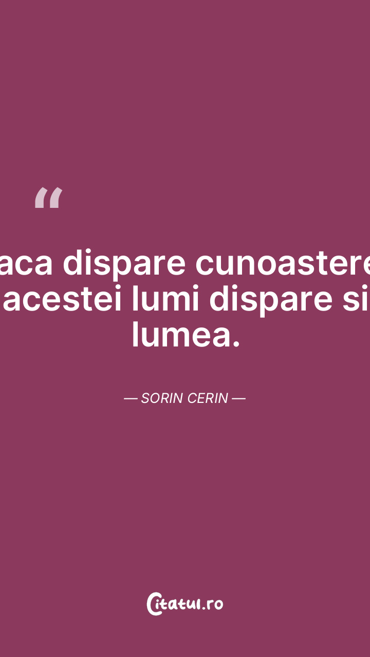 Daca dispare cunoasterea acestei lumi dispare si lumea. Sorin Cerin
