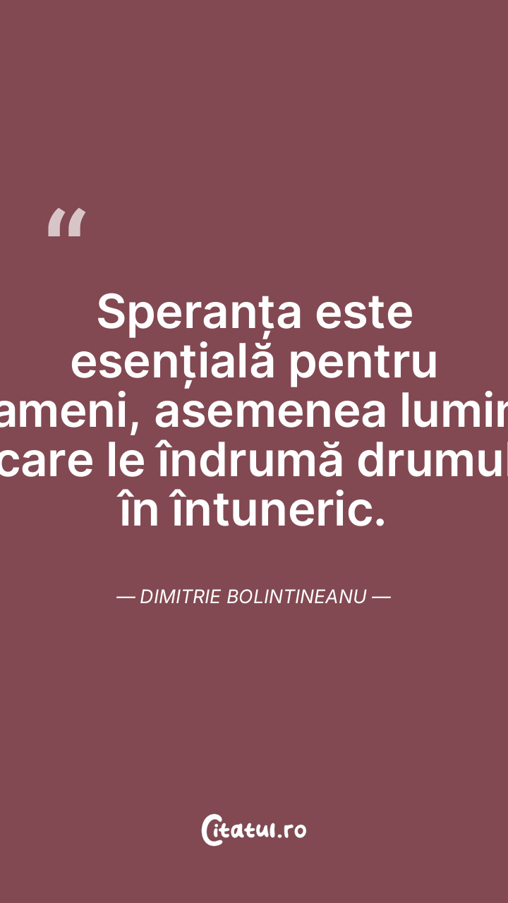 Speranța este esențială pentru oameni, asemenea luminii care le îndrumă drumul în întuneric. Dimitrie Bolintineanu