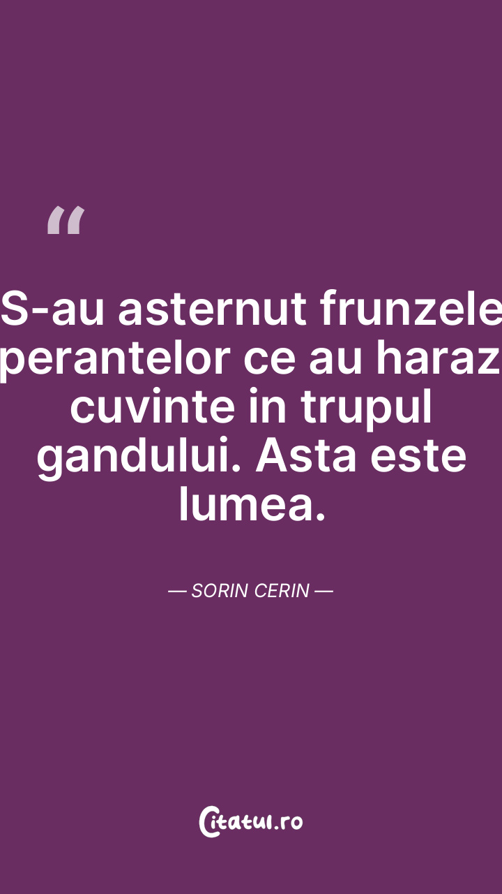 S-au asternut frunzele sperantelor ce au harazit cuvinte in trupul gandului. Asta este lumea. Sorin Cerin