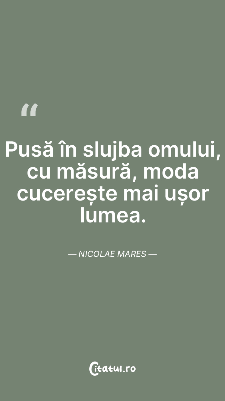 Pusă în slujba omului, cu măsură, moda cucerește mai ușor lumea. Nicolae Mares