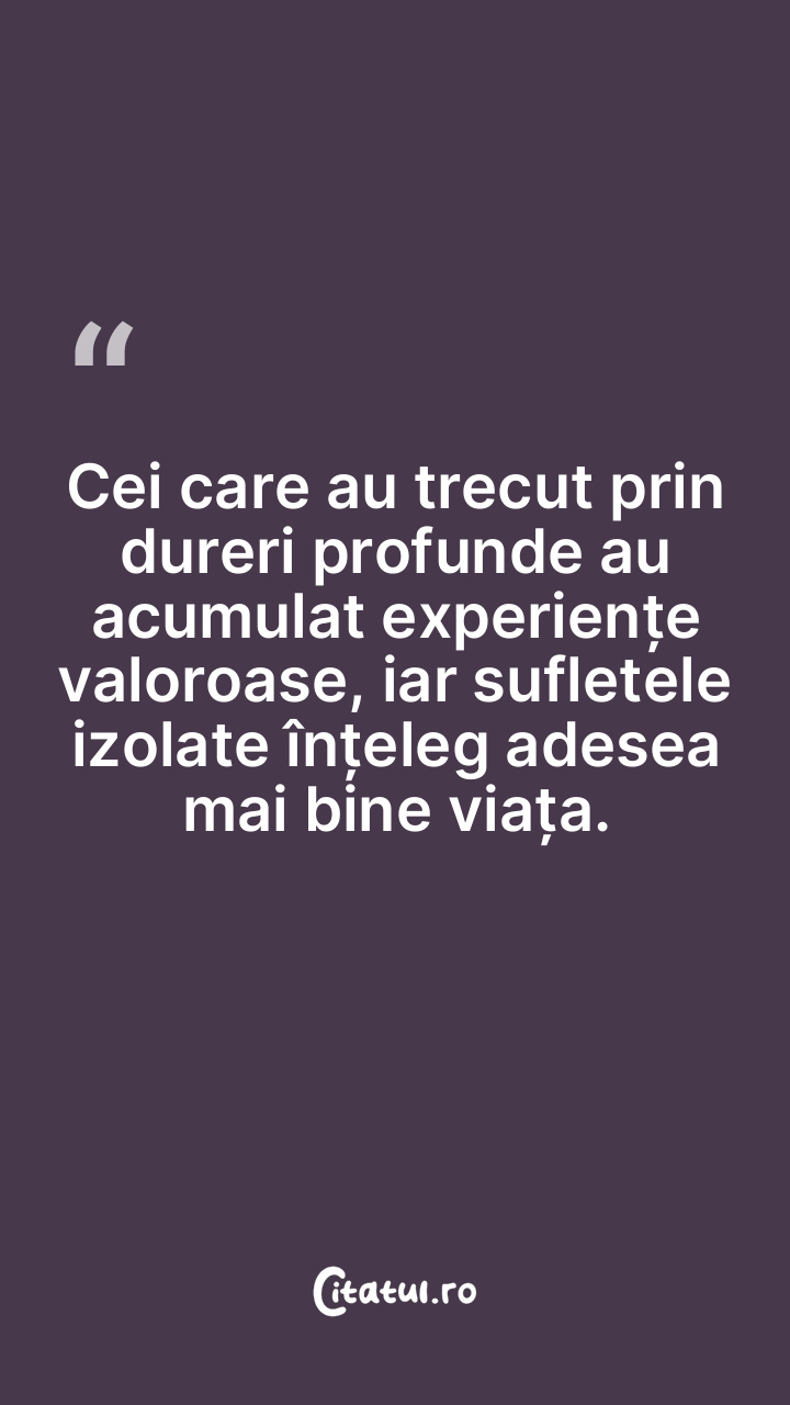 Cei care au trecut prin dureri profunde au acumulat experiențe valoroase, iar sufletele izolate înțeleg adesea mai bine viața.
