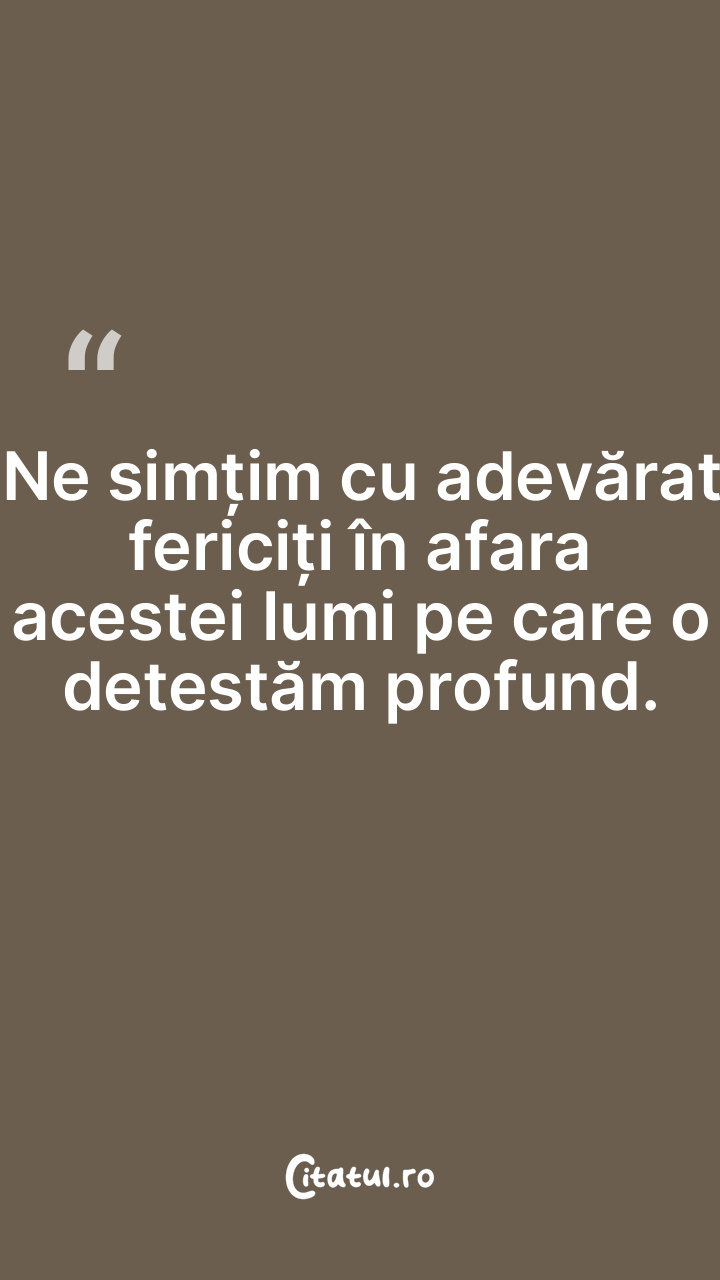 Ne simțim cu adevărat fericiți în afara acestei lumi pe care o detestăm profund.