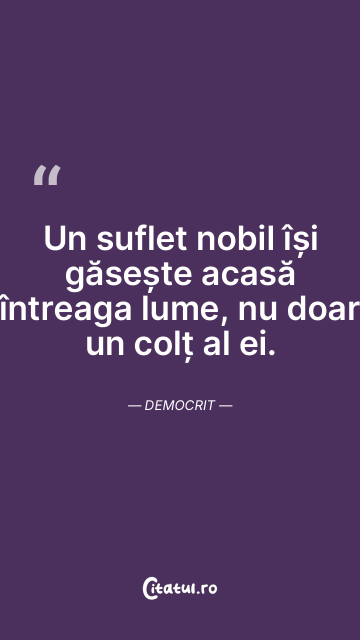 Un suflet nobil își găsește acasă întreaga lume, nu doar un colț al ei. Democrit