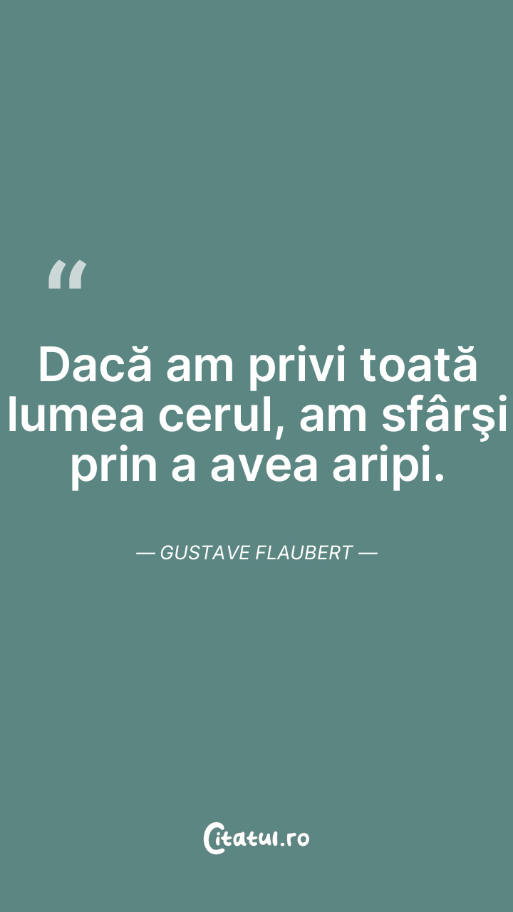 Dacă am privi toată lumea cerul, am sfârşi prin a avea aripi. Gustave Flaubert