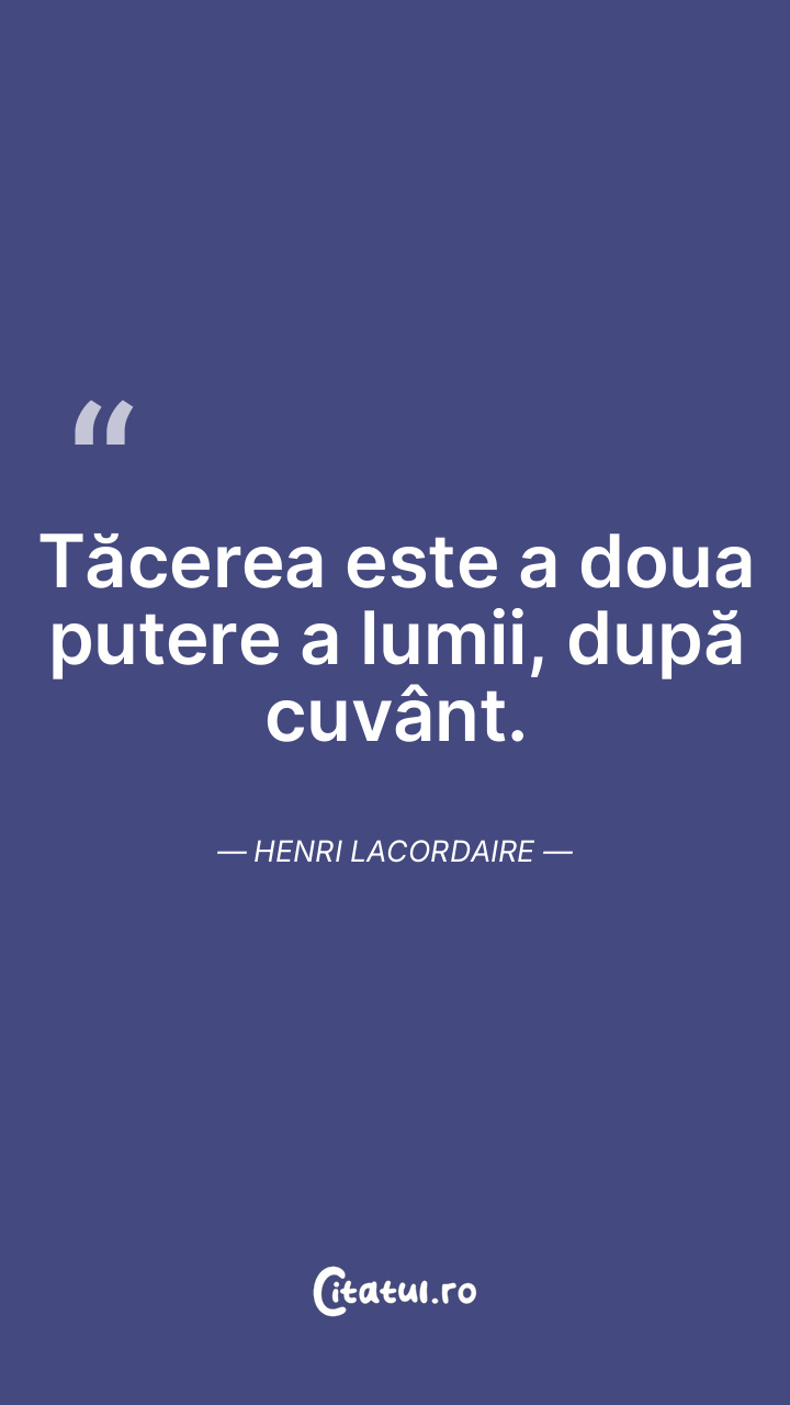 Tăcerea este a doua putere a lumii, după cuvânt. Henri Lacordaire