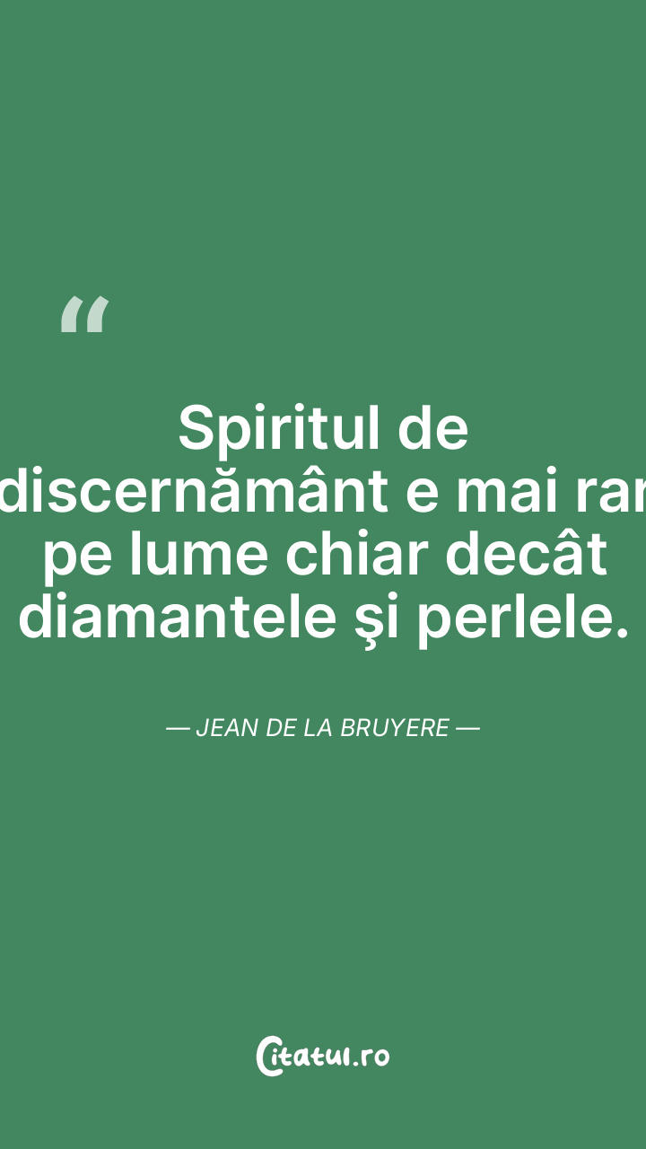 Spiritul de discernământ e mai rar pe lume chiar decât diamantele şi perlele. Jean de La Bruyere