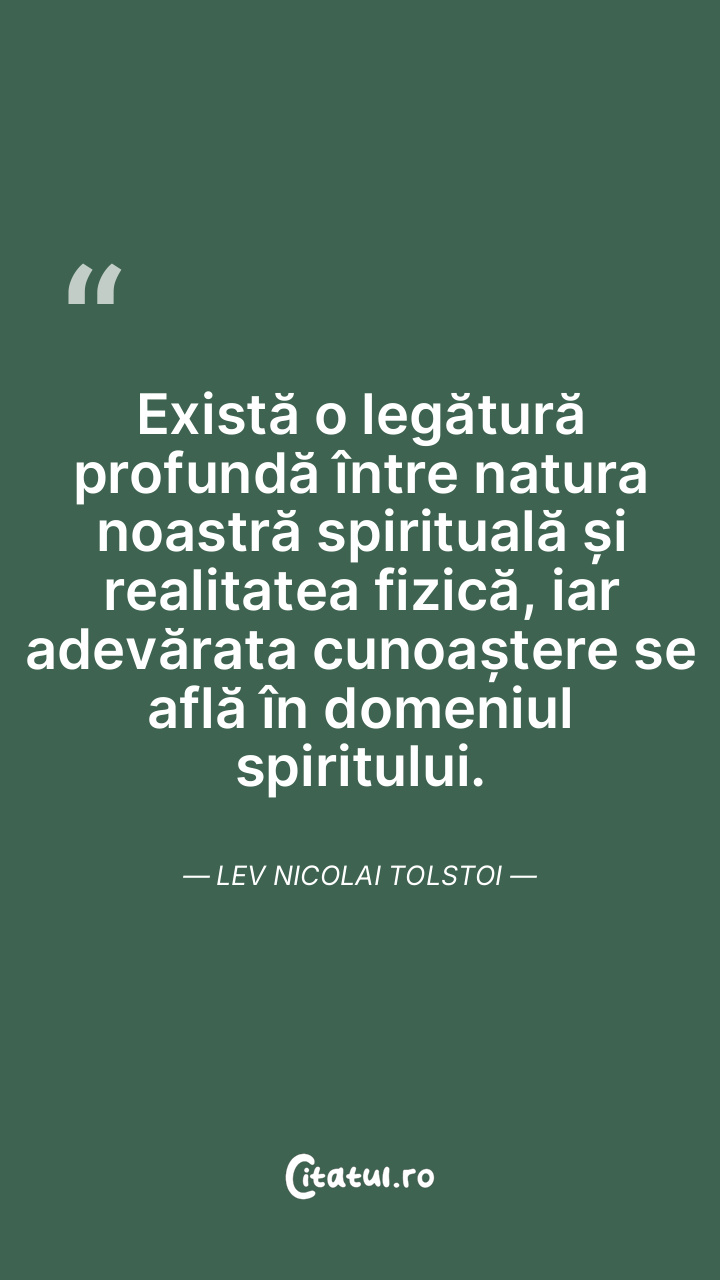 Există o legătură profundă între natura noastră spirituală și realitatea fizică, iar adevărata cunoaștere se află în domeniul spiritului. Lev Nicolai Tolstoi