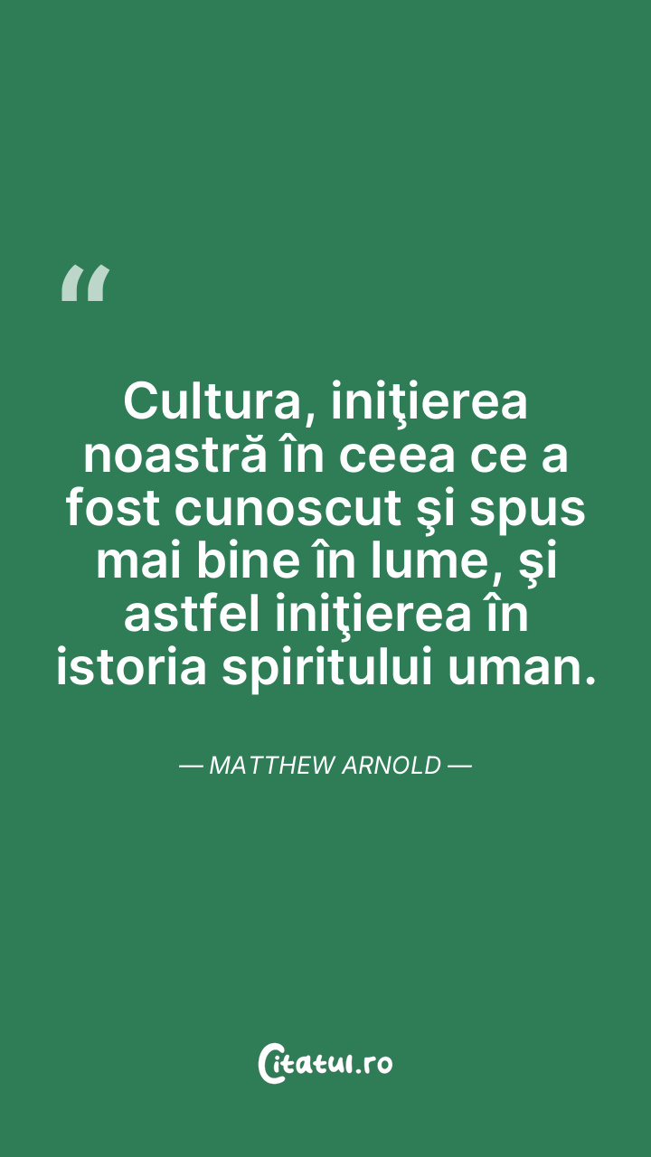 Cultura, iniţierea noastră în ceea ce a fost cunoscut şi spus mai bine în lume, şi astfel iniţierea în istoria spiritului uman. Matthew Arnold
