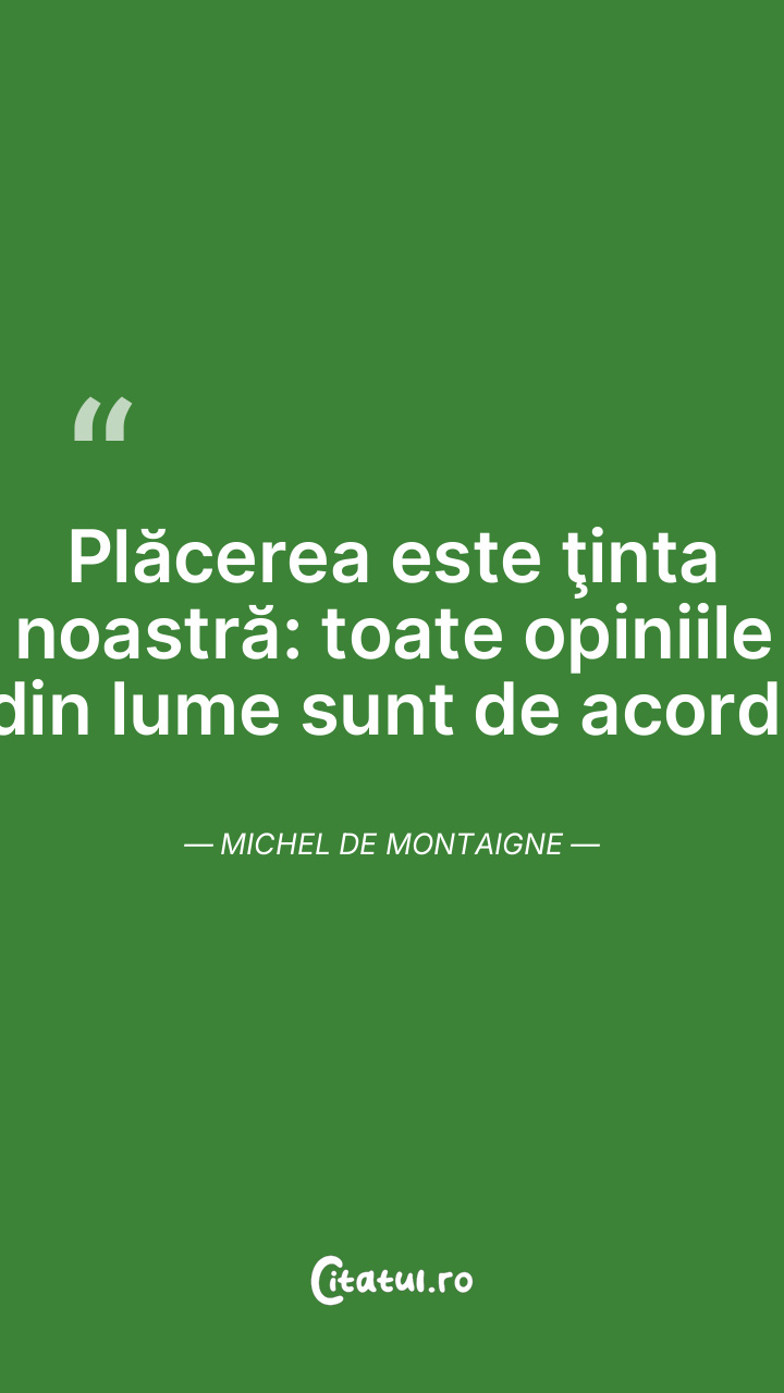 Plăcerea este ţinta noastră: toate opiniile din lume sunt de acord. Michel de Montaigne