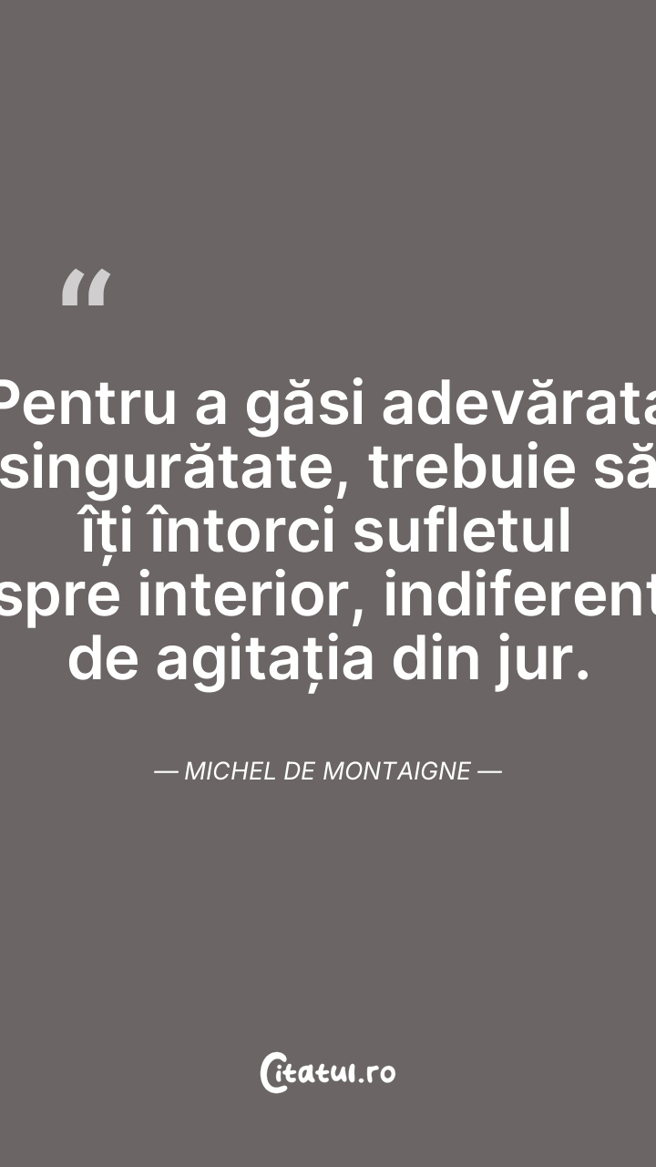 Pentru a găsi adevărata singurătate, trebuie să îți întorci sufletul spre interior, indiferent de agitația din jur. Michel de Montaigne