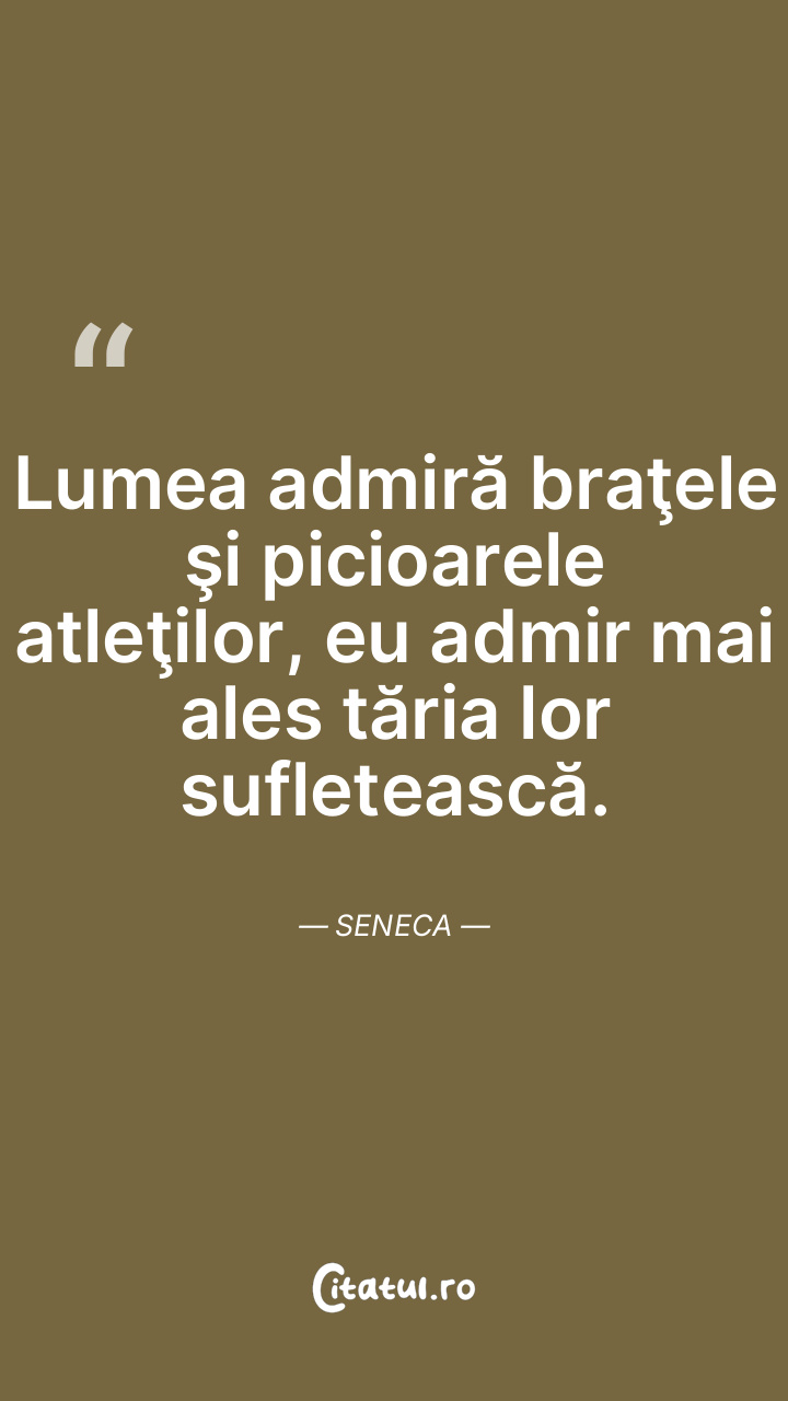 Lumea admiră braţele şi picioarele atleţilor, eu admir mai ales tăria lor sufletească. Seneca
