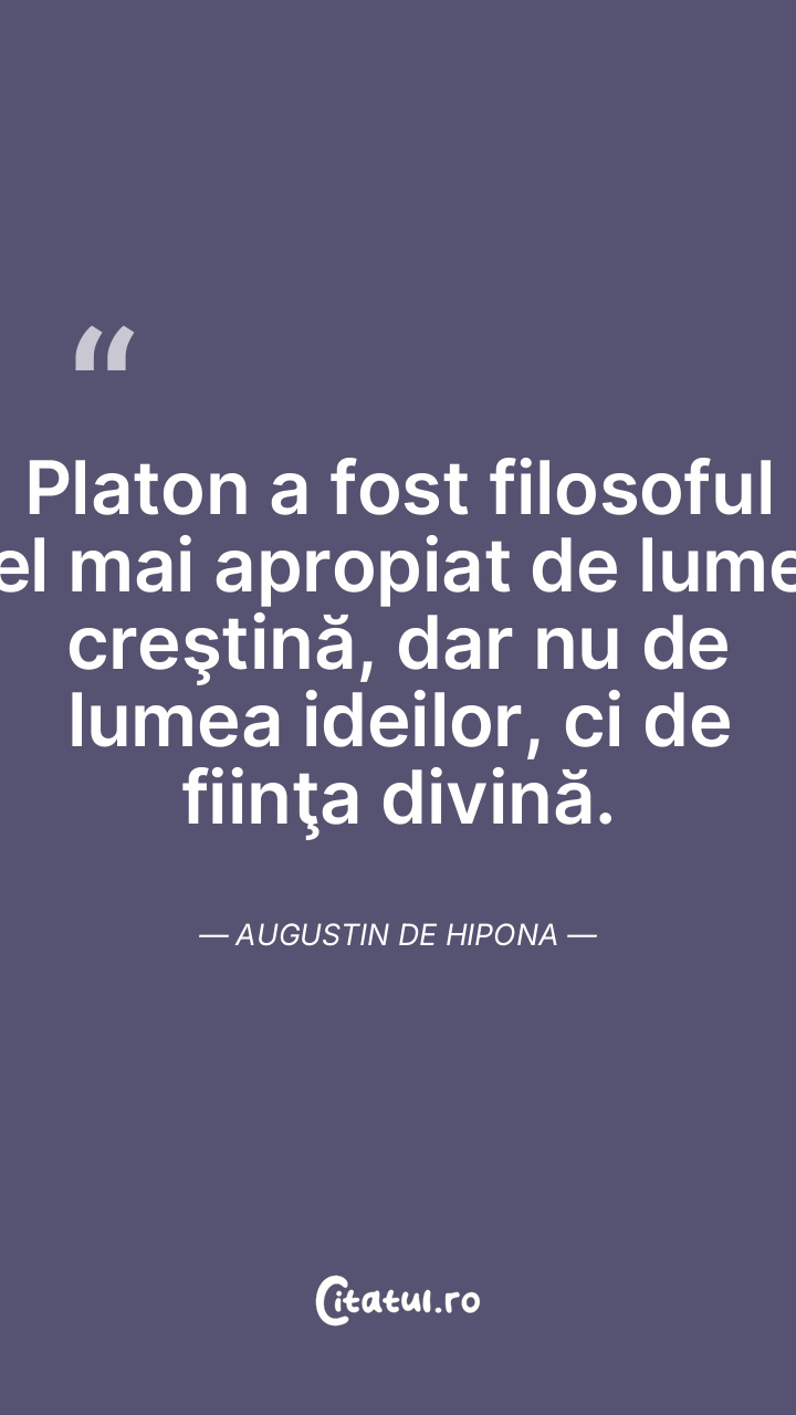 Platon a fost filosoful cel mai apropiat de lumea creştină, dar nu de lumea ideilor, ci de fiinţa divină. Augustin de Hipona