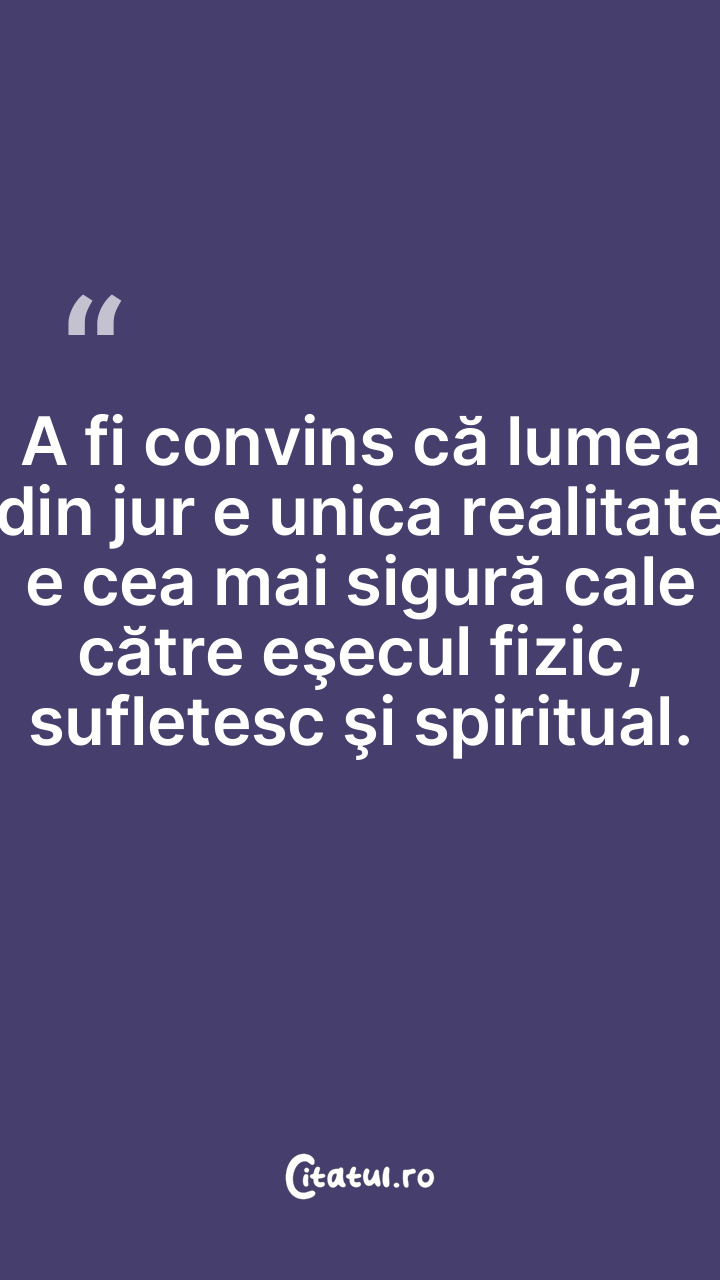 A fi convins că lumea din jur e unica realitate e cea mai sigură cale către eşecul fizic, sufletesc şi spiritual.