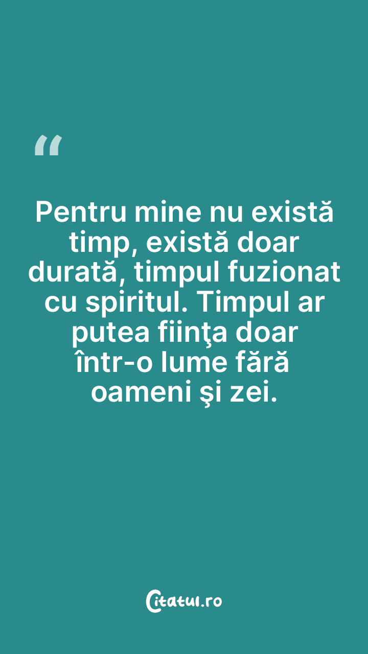 Pentru mine nu există timp, există doar durată, timpul fuzionat cu spiritul. Timpul ar putea fiinţa doar într-o lume fără oameni şi zei.