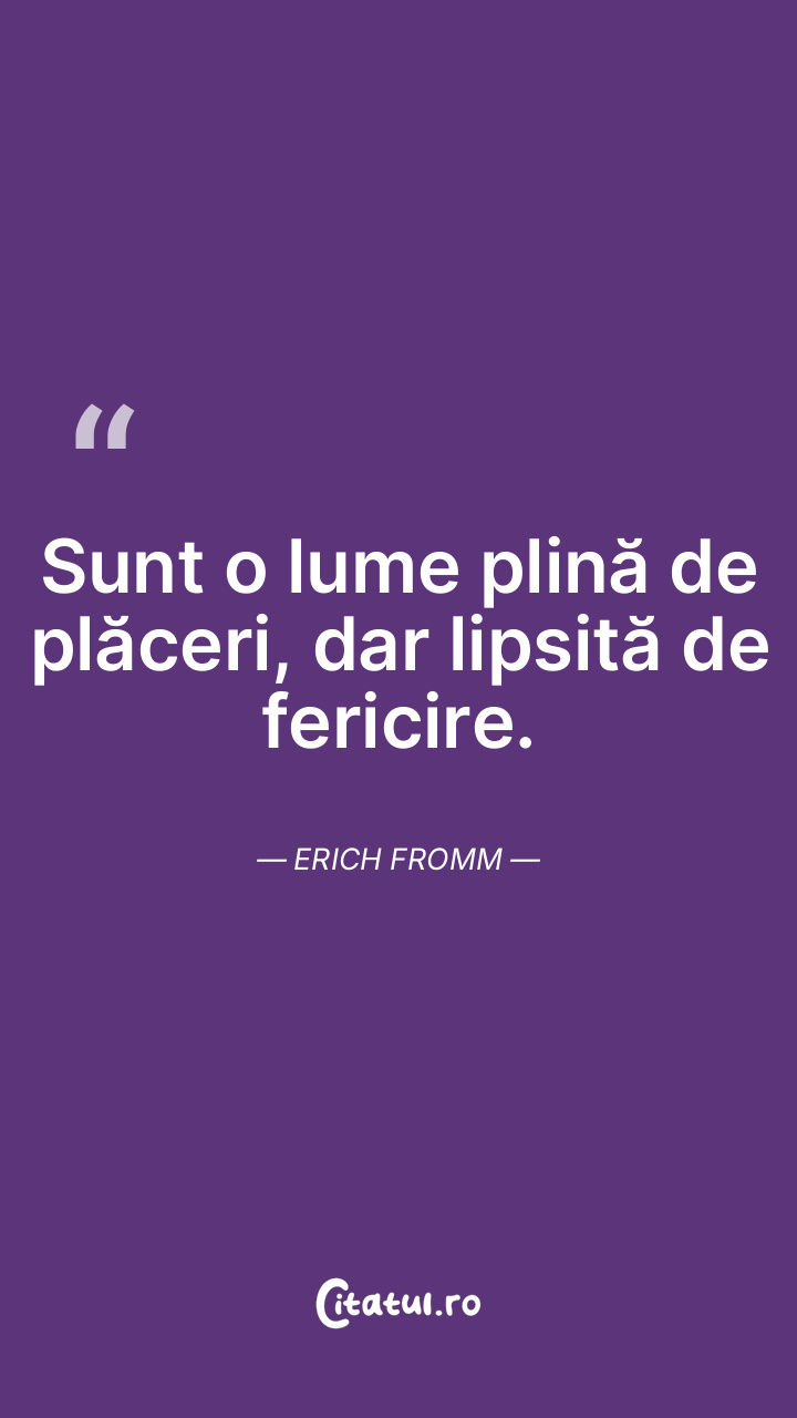 Sunt o lume plină de plăceri, dar lipsită de fericire. Erich Fromm
