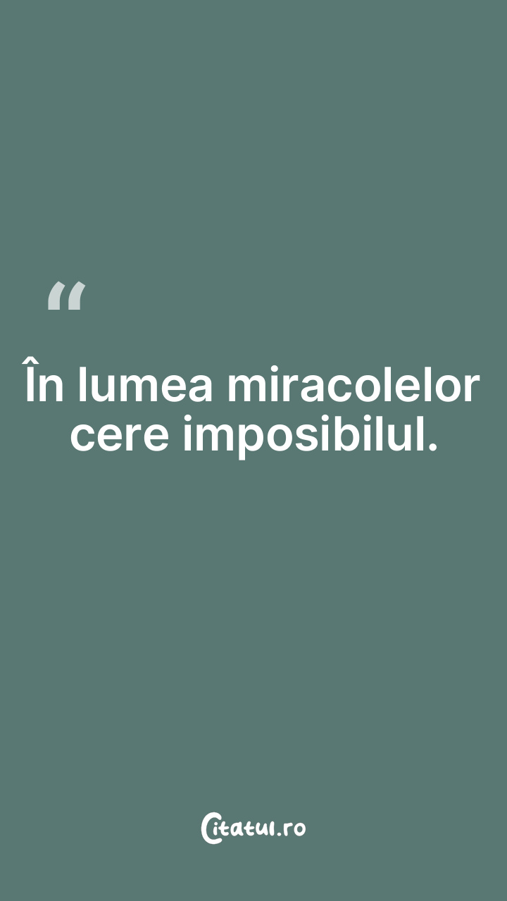 ÃŽn lumea miracolelor cere imposibilul. ...