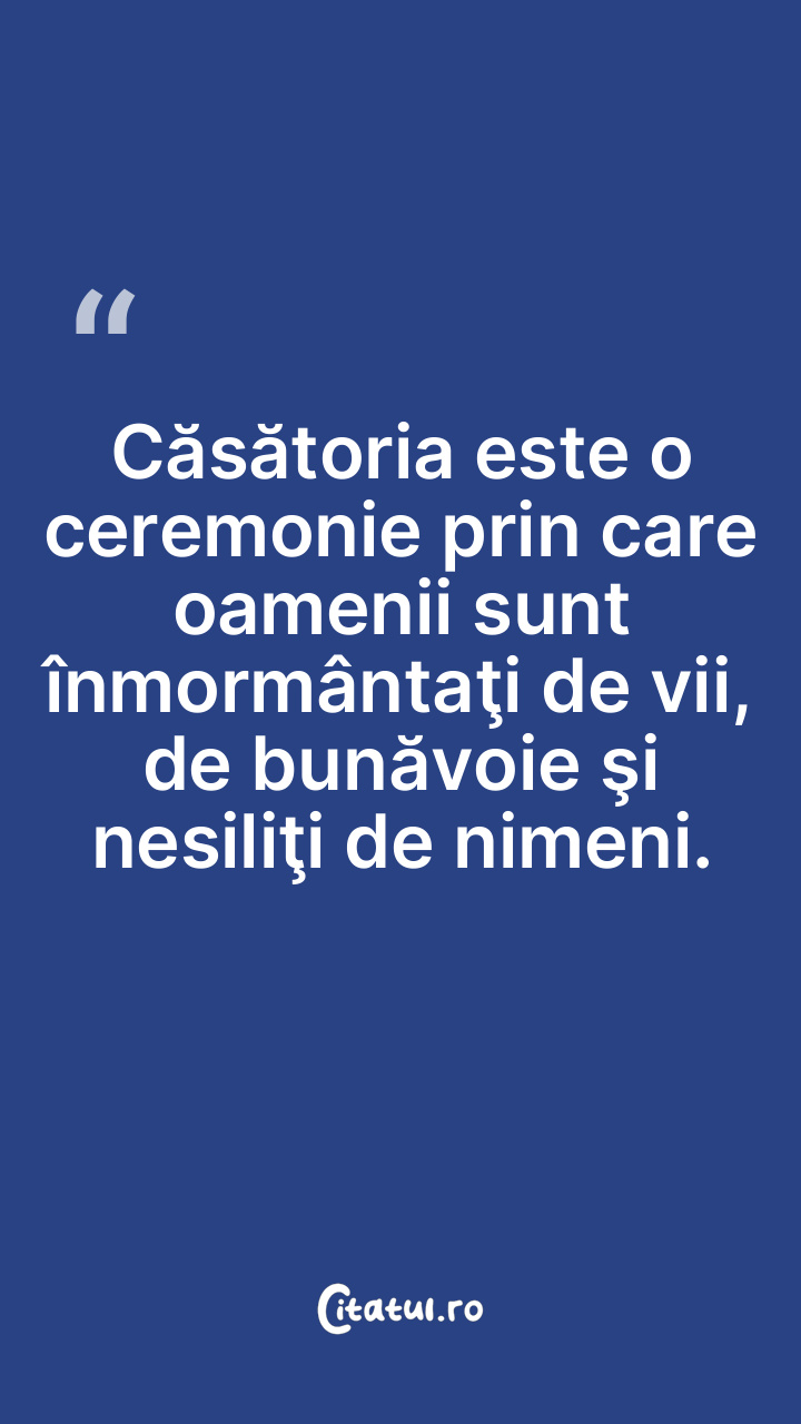 Căsătoria este o ceremonie prin care oamenii sunt înmormântaţi de vii, de bunăvoie şi nesiliţi de nimeni.