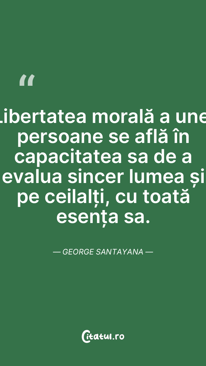 Libertatea morală a unei persoane se află în capacitatea sa de a evalua sincer lumea și pe ceilalți, cu toată esența sa. George Santayana