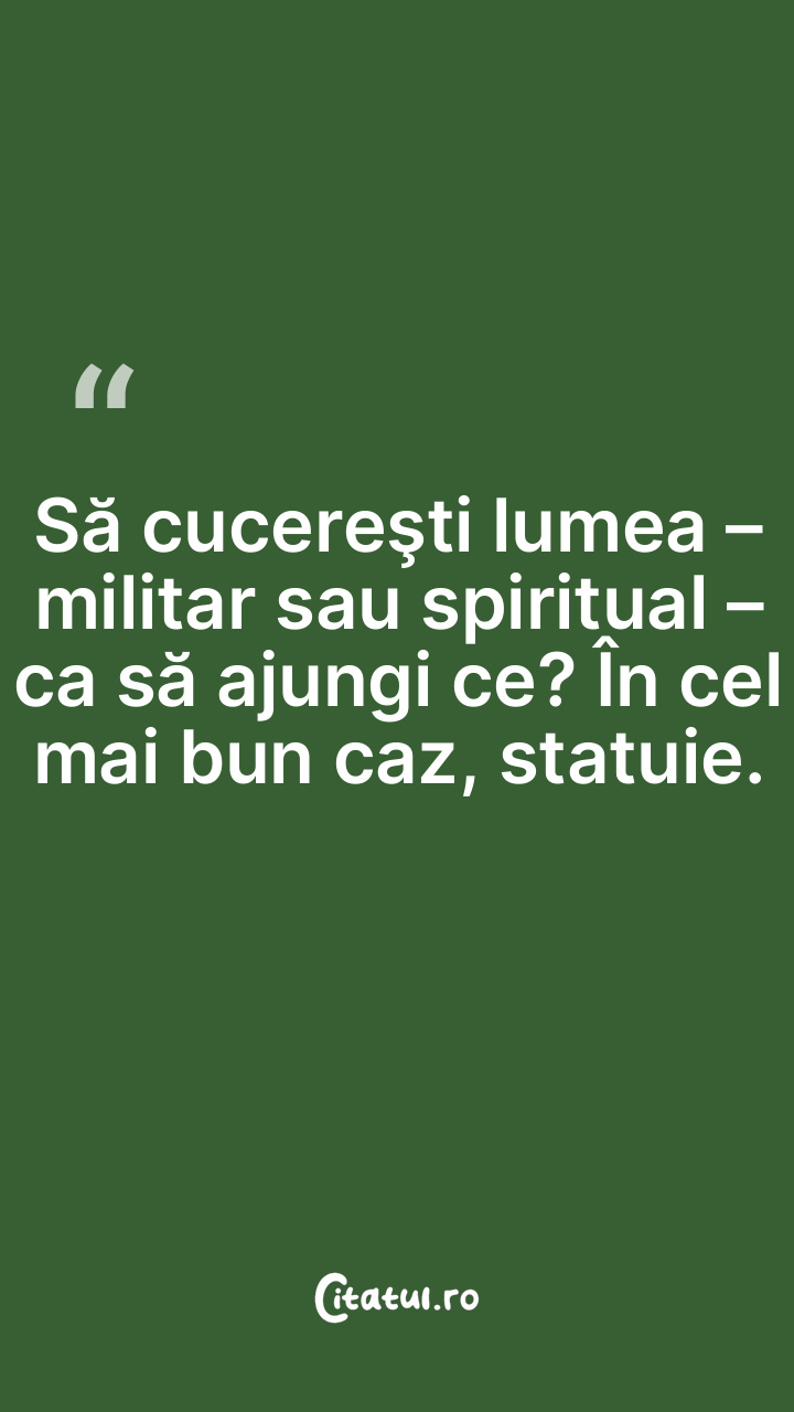 Să cucereşti lumea – militar sau spiritual – ca să ajungi ce? În cel mai bun caz, statuie.