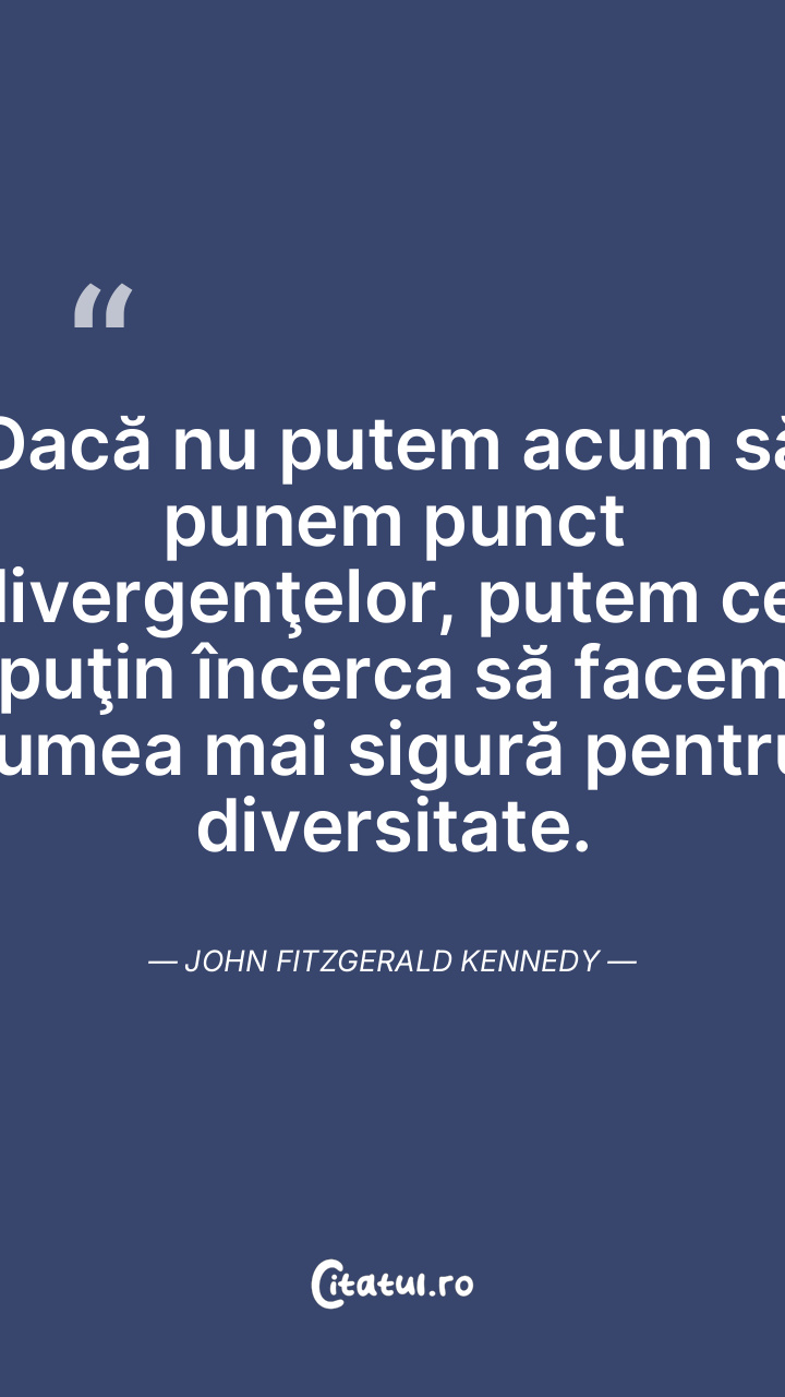 Dacă nu putem acum să punem punct divergenţelor, putem cel puţin încerca să facem lumea mai sigură pentru diversitate. John Fitzgerald Kennedy