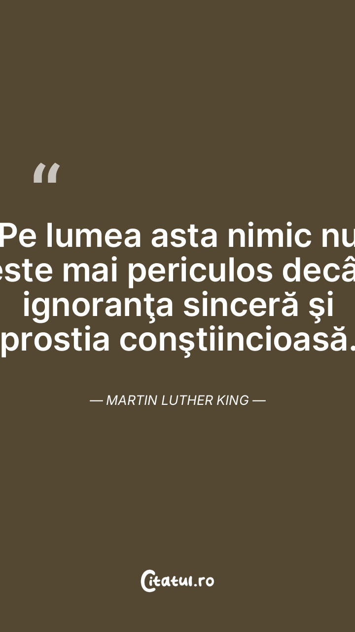 Pe lumea asta nimic nu este mai periculos decât ignoranţa sinceră şi prostia conştiincioasă. Martin Luther King